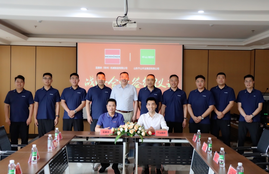 強(qiáng)強(qiáng)聯(lián)合,合作共贏。6月6日,千山集團(tuán)與溫康納戰(zhàn)略合作簽約儀式在臨沂總部成功舉行。千山集團(tuán)品牌事業(yè)部總經(jīng)理王松與溫康納(常州)機(jī)械制造有限公司營銷總監(jiān)曹平祥、華北區(qū)域銷售經(jīng)理張國棟展開深入交流,并成功簽署戰(zhàn)略合作協(xié)議。▲ 溫康納曹平祥、千山集團(tuán)王松-簽約溫康納(常州)機(jī)械制造有限公司是德國“Wemhoener”