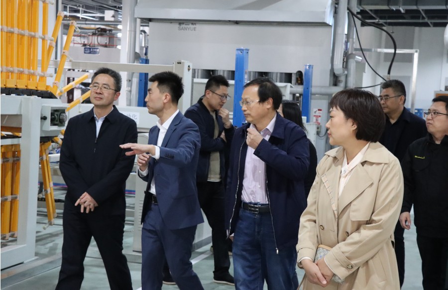 領導一行先后參觀了千山新建自動化生態板生產車間、高標準成品庫、國內先進的浸漬膠膜紙飾面人造板自動化壓貼生產線,對工廠先進化、設備智能化、板材無醛化,給予了充分肯定。