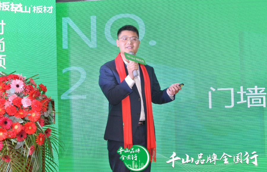 千山品牌事業部總經理王松致辭。王總講到,正如全國行的主題“時尚領航 品質筑家”,千山將在產品端持續發力,讓2.0品牌定位真正落地,通過產品和渠道的雙賦能,獲得市場高度認可。