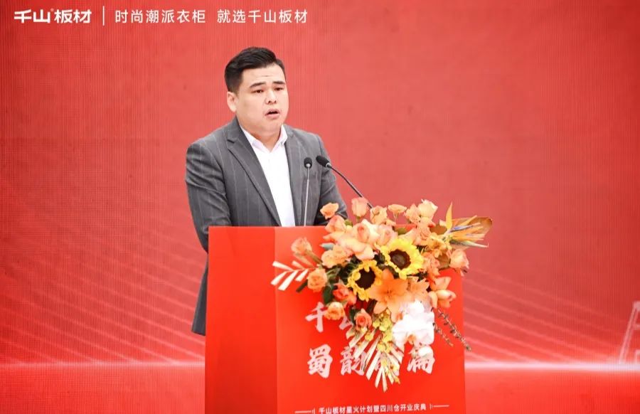 千山品牌事業(yè)部總經(jīng)理王松發(fā)表致辭。王總表示,四川倉(cāng)的開(kāi)業(yè),是繼山東倉(cāng)之后,千山板材發(fā)展歷程中又一重要的里程碑,也是千山板材在四川發(fā)展的全新起點(diǎn)。千山將以此為契機(jī),加強(qiáng)與四川區(qū)域所有合作伙伴的溝通與合作,實(shí)現(xiàn)品牌和銷(xiāo)量的雙提升。