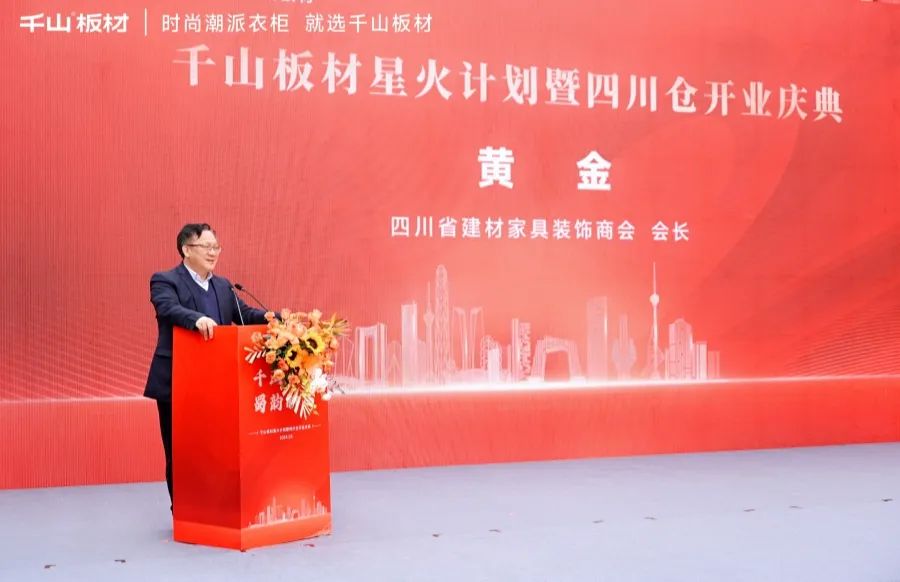 四川省建材家具裝飾商會(huì)會(huì)長(zhǎng)黃金先生發(fā)表致辭。黃會(huì)長(zhǎng)表達(dá)了對(duì)千山板材四川倉(cāng)的美好期許和祝愿,并表示四川家具市場(chǎng)的繁榮與發(fā)展,離不開(kāi)千山板材等一眾優(yōu)秀供應(yīng)鏈品牌的入駐與支持,也希望四川倉(cāng)合力共上,迎來(lái)高質(zhì)量發(fā)展。