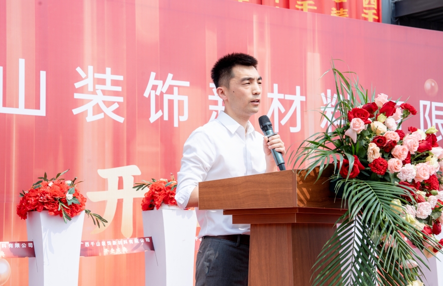 慶典現場,融安縣人民政府副縣長陳遠昭、融安縣工業集中區管理委員會副主任藍代勛、融安縣香杉協會秘書長韋軍先后致辭,為廣西千山裝飾新材料有限公司的正式開業表示熱烈的祝賀,并送上了美好的祝福。