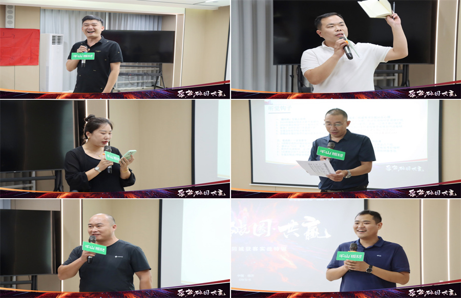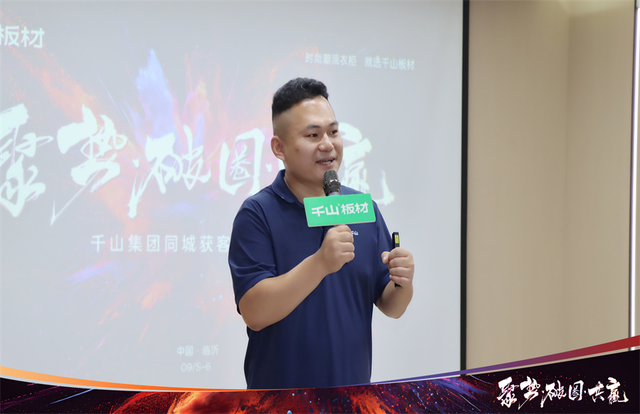打好流量牌 把握線上渠道 將同城獲客作為重要抓手打造IP 在開營致辭中,千山板材山東倉總經(jīng)理楊秀山首先對來到總部學(xué)習(xí)的伙伴們表示熱烈歡迎!楊總分享到,面對劣幣驅(qū)逐良幣的激烈競爭環(huán)境,破局向上、流量打造勢在必行。如今是短視頻和直播時代,大家要提高自身專業(yè)度,布局線上渠道,驅(qū)動增長。也希望家人們把握學(xué)習(xí)好時機(jī),滿載而歸。