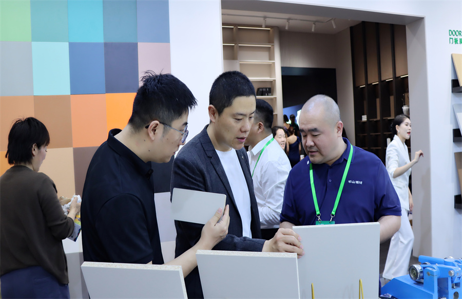 千山板材“綠BOX”展館C位出道,成為展會靚麗的風景線,關注度持續爆棚,吸引了眾多觀展商、媒體達人、行業大咖、專業觀眾前來探“秘”,感受和記錄千山板材的魅力和商業模式進階,讓更多的人了解千山板材。