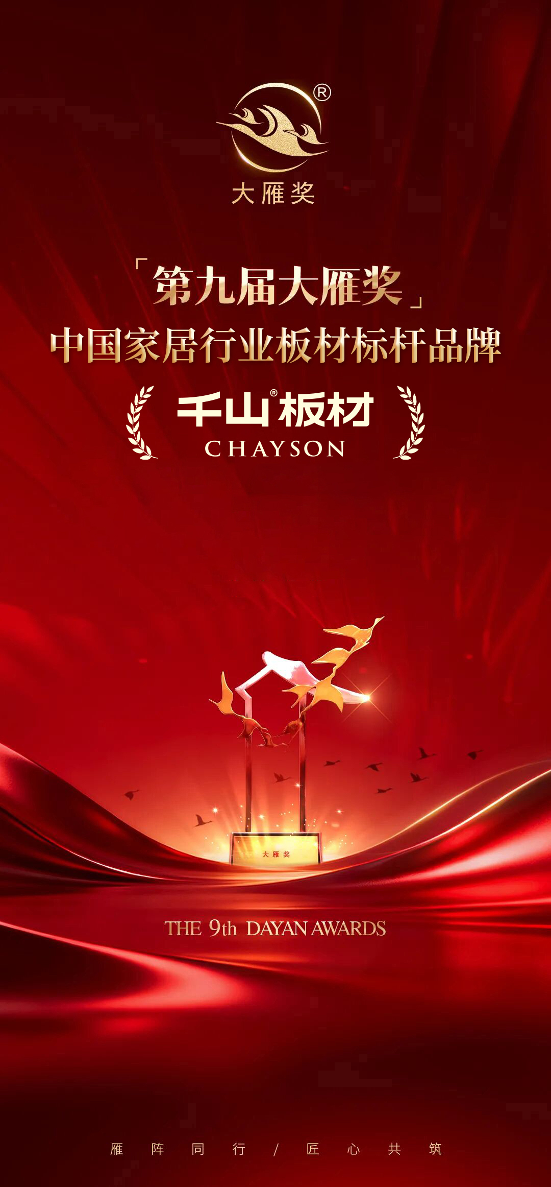 榮譽(yù)加冕,亦是全新起點(diǎn)。此次摘得大雁獎(jiǎng),是行業(yè)與市場(chǎng)對(duì)千山板材的雙重肯定,更是其持續(xù)前行的動(dòng)力。未來(lái),千山板材將繼續(xù)堅(jiān)守 “高質(zhì)價(jià)比” 定位,深耕技術(shù)研發(fā)與產(chǎn)品創(chuàng)新,與行業(yè)同仁攜手同行、匠心共筑,以硬核實(shí)力推動(dòng)板材行業(yè)品質(zhì)升級(jí),持續(xù)助推中國(guó)家居產(chǎn)業(yè)高質(zhì)量發(fā)展,為千萬(wàn)家庭打造理想家!