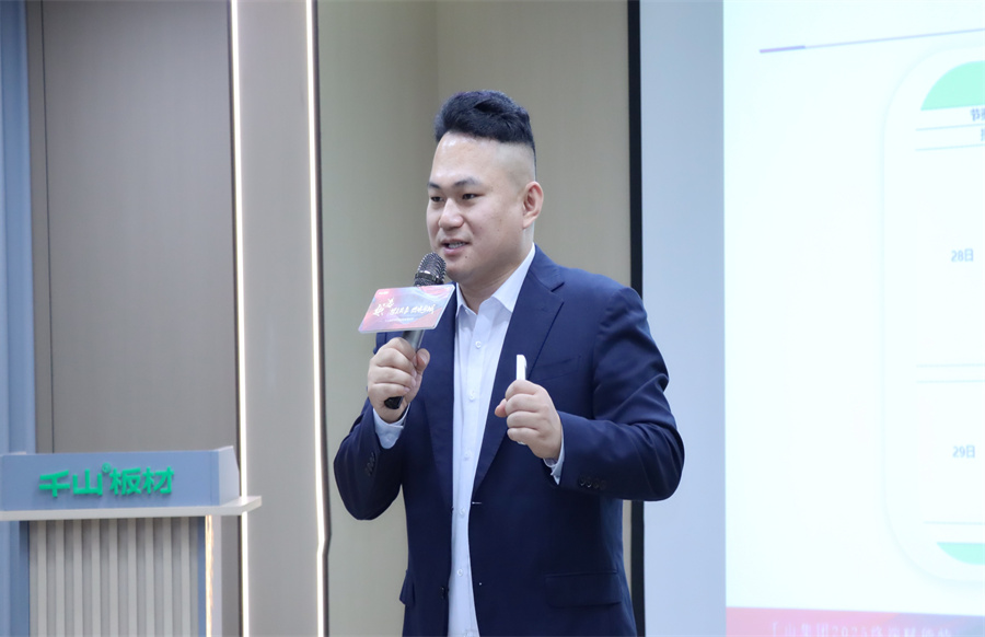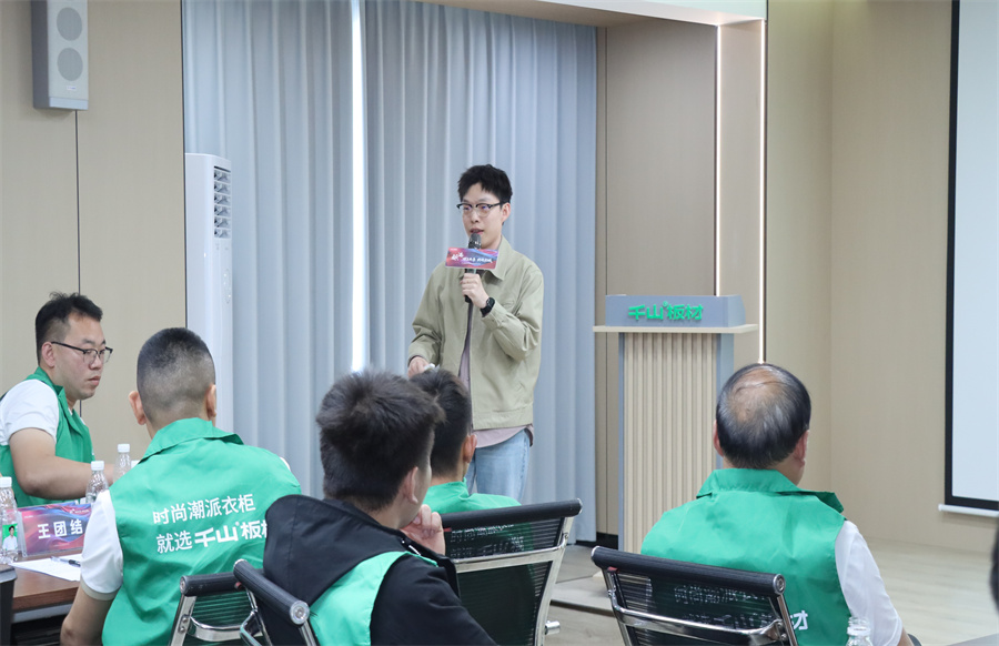 終端賦能不是選擇題,而是關(guān)乎生存的必答題!千山板材華中大區(qū)經(jīng)理王殿忠致辭。王總表示,面對數(shù)字化變革浪潮,千山果斷提出“雙線融合、雙核驅(qū)動”戰(zhàn)略:線上構(gòu)建營銷矩陣,線下打造終端門店體驗場景,而抖音同城和直播正是貫穿線上的流量支點,千山終端賦能特訓(xùn)將引導(dǎo)助力經(jīng)銷商伙伴撬動業(yè)績轉(zhuǎn)化增長。