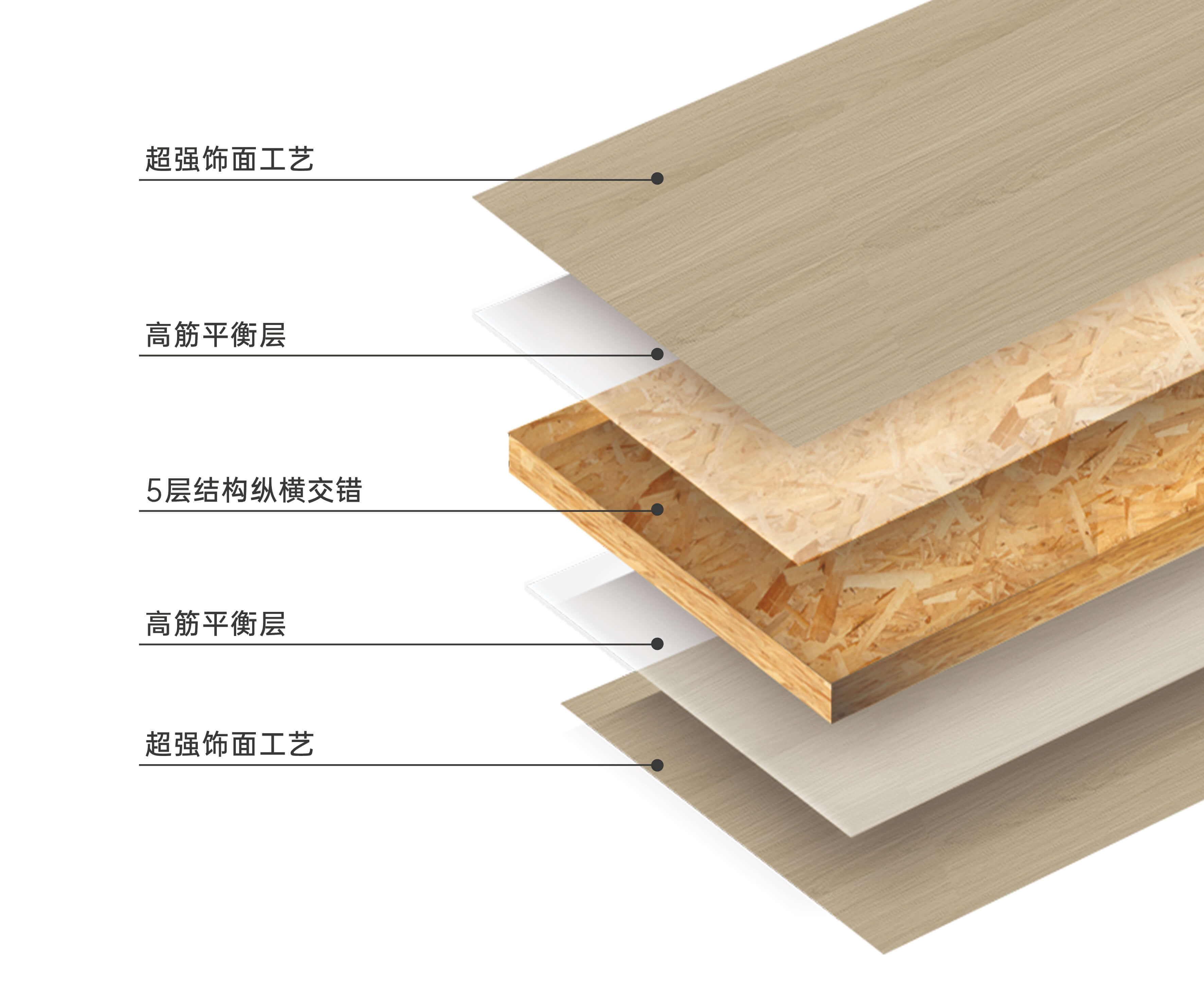 千山全能板(實(shí)木大刨片)采用德國進(jìn)口迪芬巴赫連續(xù)平壓線生產(chǎn),均質(zhì)刨片定向鋪裝,縱橫交錯(cuò)排列,5層結(jié)構(gòu)精細(xì)緊密,成就穩(wěn)定抗變性能。