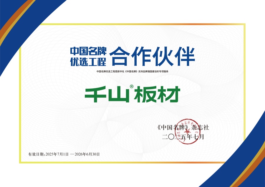 7月23日,千山集團傳來重磅喜訊——憑借卓越的產品品質、深厚的品牌積淀與領先的行業影響力,千山板材成為中國名牌優選工程合作伙伴。這一榮譽不僅是對千山多年來堅守品質、創新發展的高度肯定,更標志著千山發展邁入全新階段。 中國名牌優選工程是新華社《中國名牌》支持品牌強國建設的專項服務,旨在推動中國品牌發展,