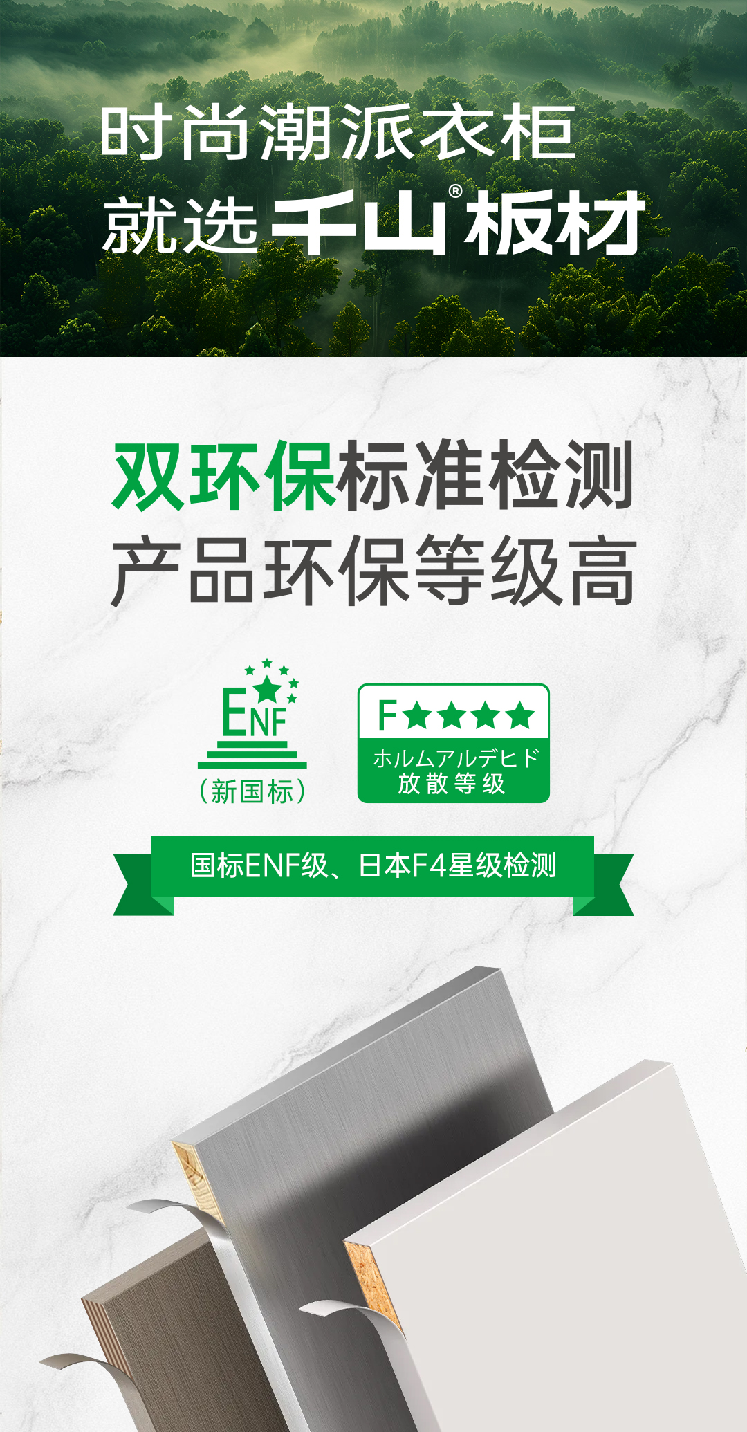 一直以來,健康、綠色、環保始終是家庭裝修的首要需求。千山作為綠色人居倡導者,以“推進時尚、健康、潮流家居板材、裝飾材料的普及應用為己任”,再次刷新環保新高度,順利通過ENF級和F☆☆☆☆雙環保檢測,為消費者的健康品質生活再上一重綠色防線。“環保”來真的!ENF和F4星雙檢測甲醛釋放限量是板材的一項重要環保性能指